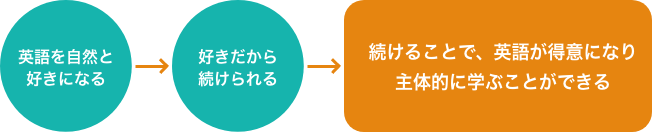 日本語を習得した時と同じ環境(無学年、集団)により、英語を自然に話せるようになる学習環境を提供しています。