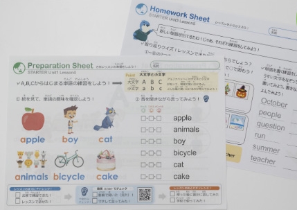 最後に日本人講師による、まとめ・復習を行います。フラッシュカードや確認テスト、Homework(宿題)・予習シートの配布で終了です。